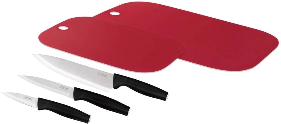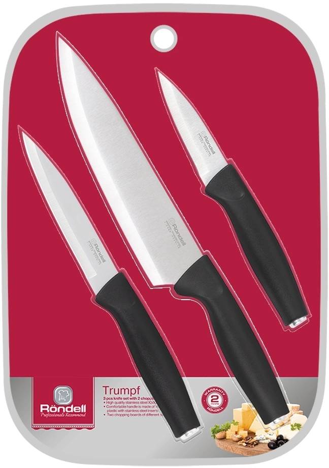 | Состав комплекта: | Нож для чистки овощей, поварской, универсальный, две разделочные доски |