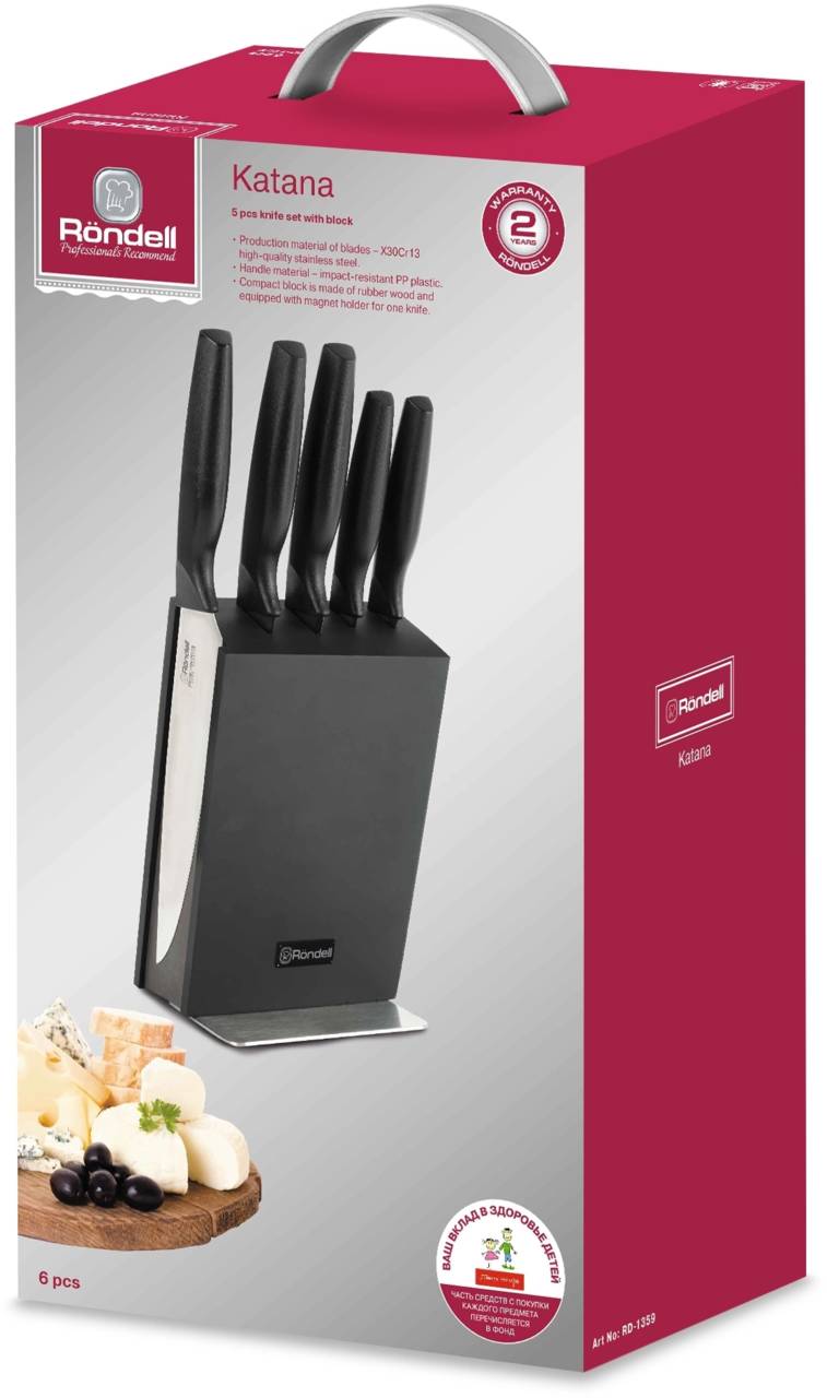 Нож кухонный RONDELL Набор ножей кухон. Katana RD-1359 компл.:6предм. с подставкой черный подар.коробка