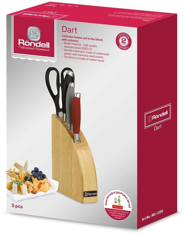 Нож кухонный RONDELL Набор ножей кухон. Dart RD-1358 компл.:5предм. подставка/ножницы черный/красный/серый подар.коробка
