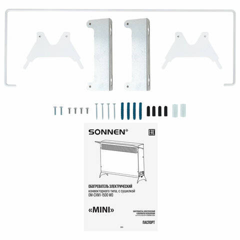 SONNEN Обогреватель-конвектор MINI-1500.2, 1500 Вт, вешалка, Х-образный нагревательный элемент, белый, сделано в России, 457631