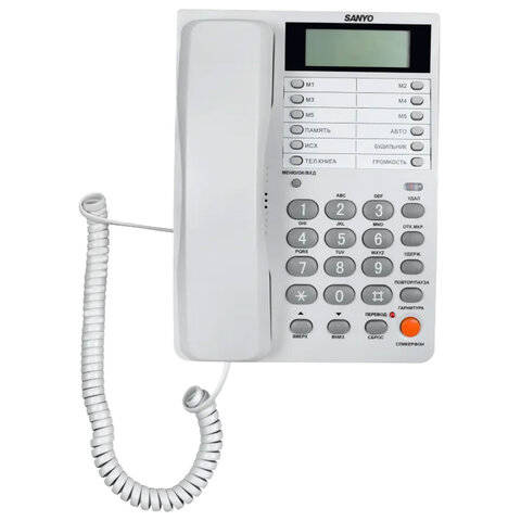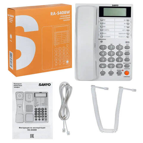 Sanyo RA-S408W - надежный стационарный телефон для дома и офиса, оснащенный всем необходимым функционалом. Прием входящих и совершение исходящих вызовов