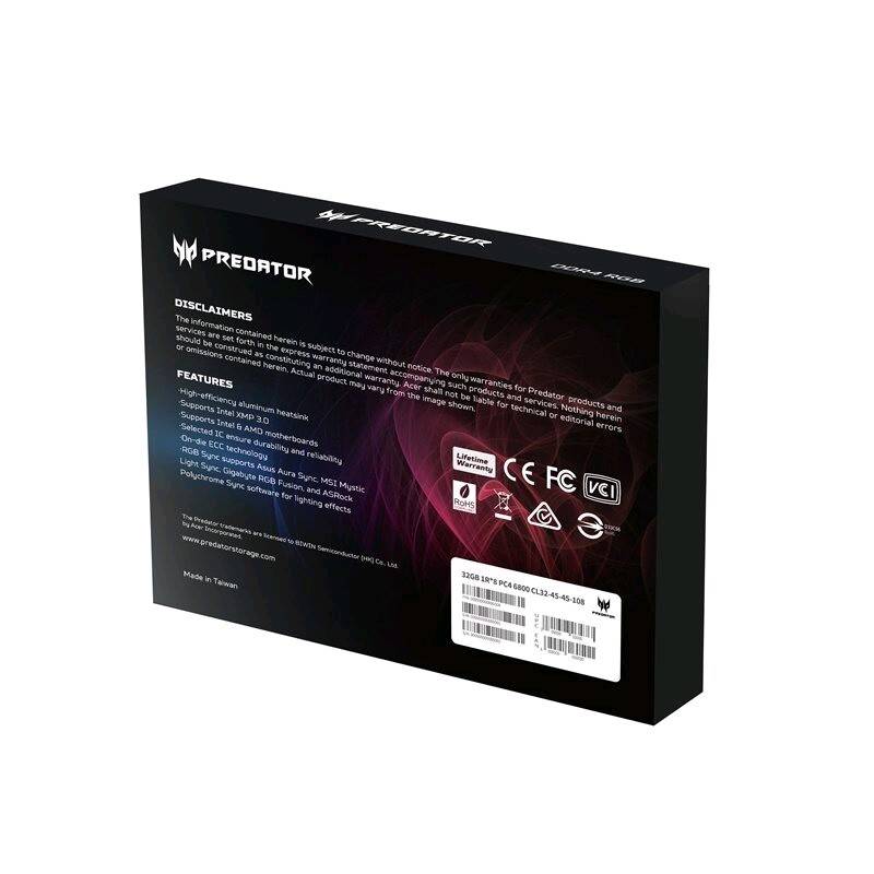 Оперативная память Acer Модуль памяти DDR5 Predator Hermes RGB 32Gb 1.4V HERMES-32GB-6800-1R8-V4 with Fan White