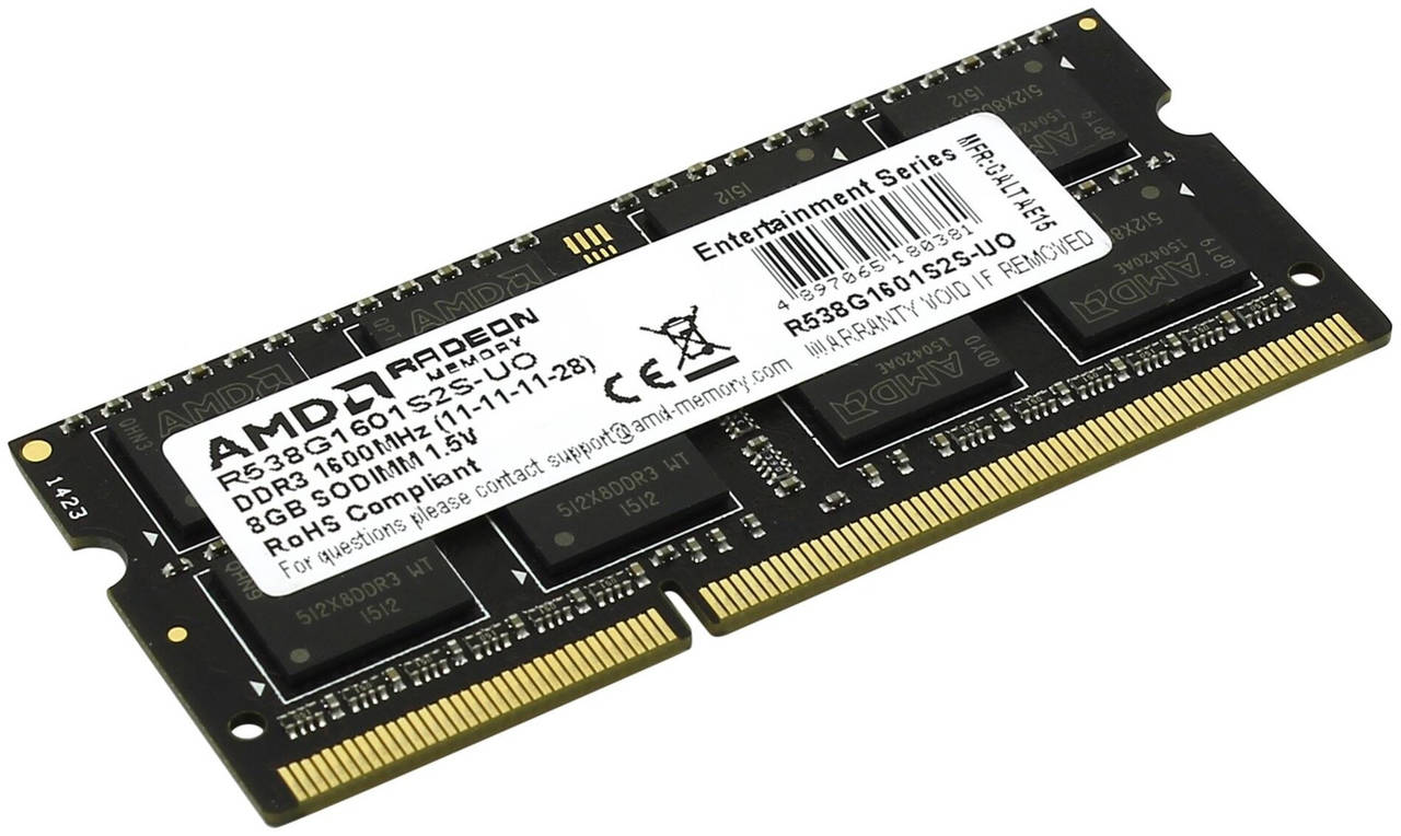 Оперативная память AMD Память DDR3 8Gb 1600MHz R538G1601S2S-U OEM PC3-12800 CL11 SO-DIMM 204-pin 1.5В
