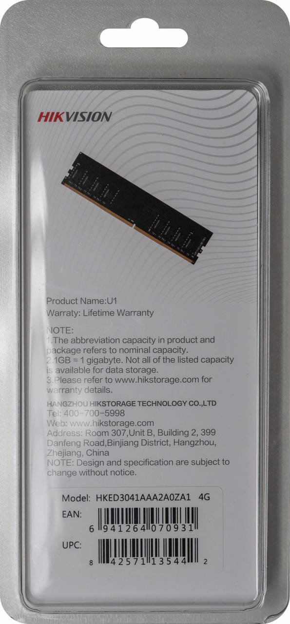 Оперативная память HIKVISION Память DDR3 4Gb 1600MHz HKED3041AAA2A0ZA1/4G RTL PC3-12800 CL11 DIMM 240-pin 1.5В Ret