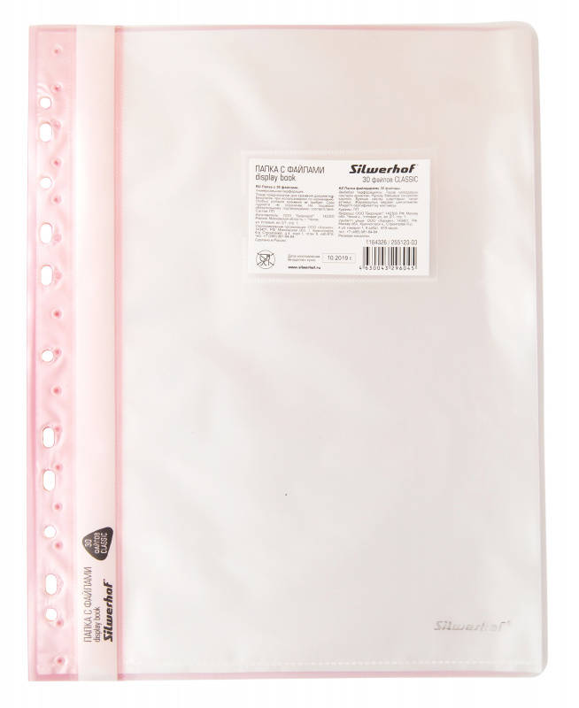 SILWERHOF Папка-скоросшиватель Silwerhof Classic 255123-03 A4 прозрач.верх.лист 30 вкладышей боков.перф. розовый (255123-03)