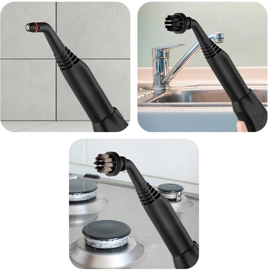 | Насадки в комплекте: | насадка для пола, тряпка для пола, рамка для ковра, нейлоновая щетка, стальная щетка, струйная насадка, держатель для вешалок, держатель шнура, насадка со скребком, насадка для отпаривания, тряпка для отпаривания |