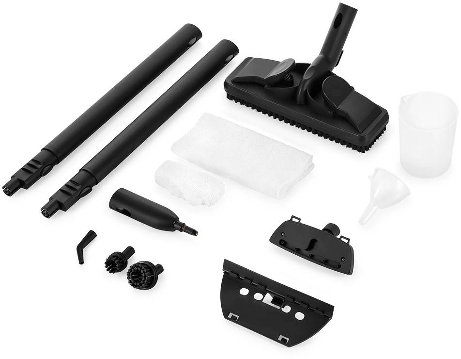 | Насадки в комплекте: | тряпка для пола, струйная насадка, угловая насадка, скребок для стекла, насадка для отпаривания, тряпка для отпаривания, круглая нейлоновая щетка маленькая, круглая нейлоновая щетка большая |