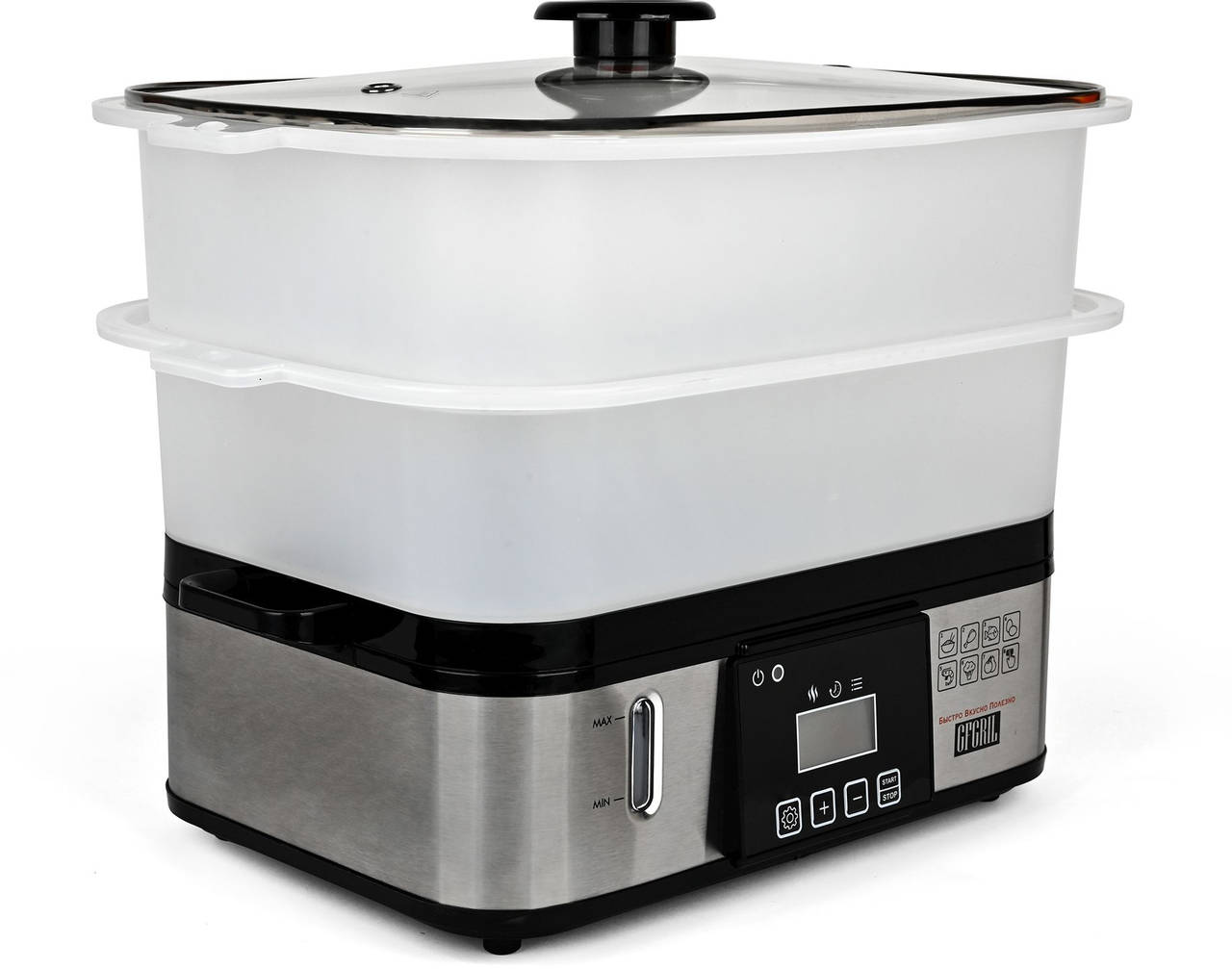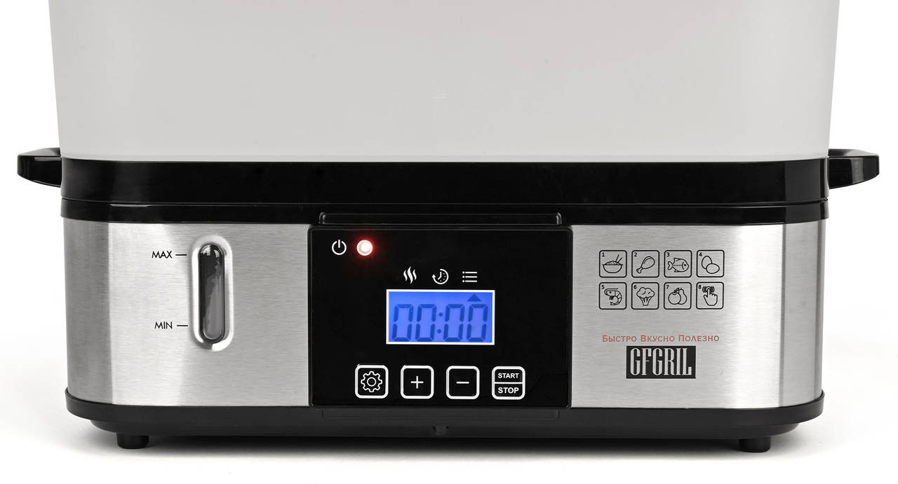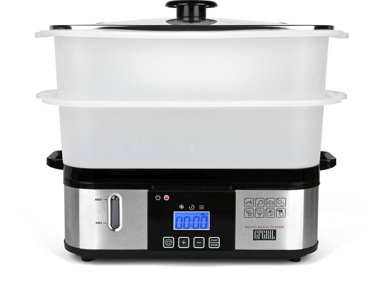 Пароварка GFGRIL GFS-9D 2ярус. 800Вт серебристый/черный