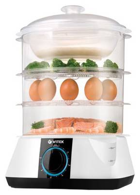 Пароварка VITEK VT-1559 3ярус. 900Вт белый/черный