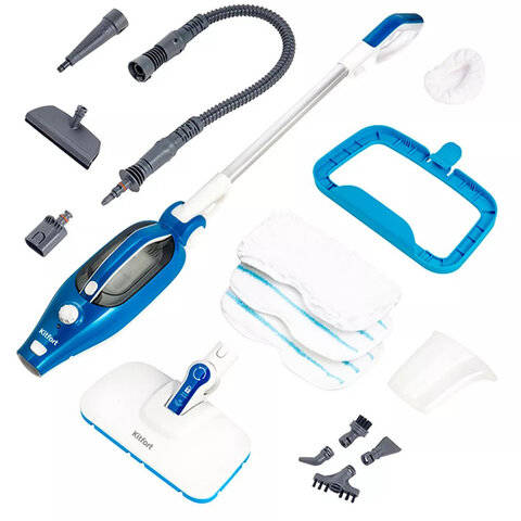 Паровая швабра KITFORT KT-1005-1, 1500 Вт, 1 бар, объем 0,35 л, 2 в 1, 5 насадок, голубая, КТ-1005-1