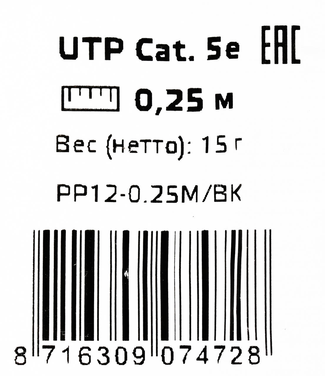 Патч-корд PREMIER PP12-0.25M/BK 1000Гбит/с UTP 4 пары cat.5E CCA molded 0.25м черный RJ-45