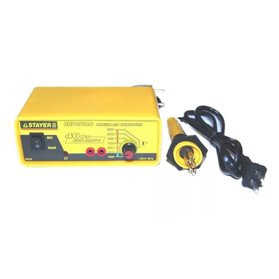 Паяльное оборудование STAYER Станция "EXPERT" для выжигания , 2 сменных жала, температурный режим 450-750 °С, 40Вт [45228]