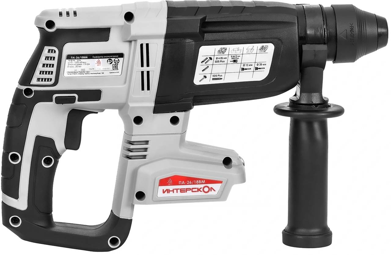 Описание:Перфоратор Интерскол ПА-26/18ВМ без АКБ и ЗУ патрон:SDS-plus уд.:2.8Дж аккум. (731.0.0.70)