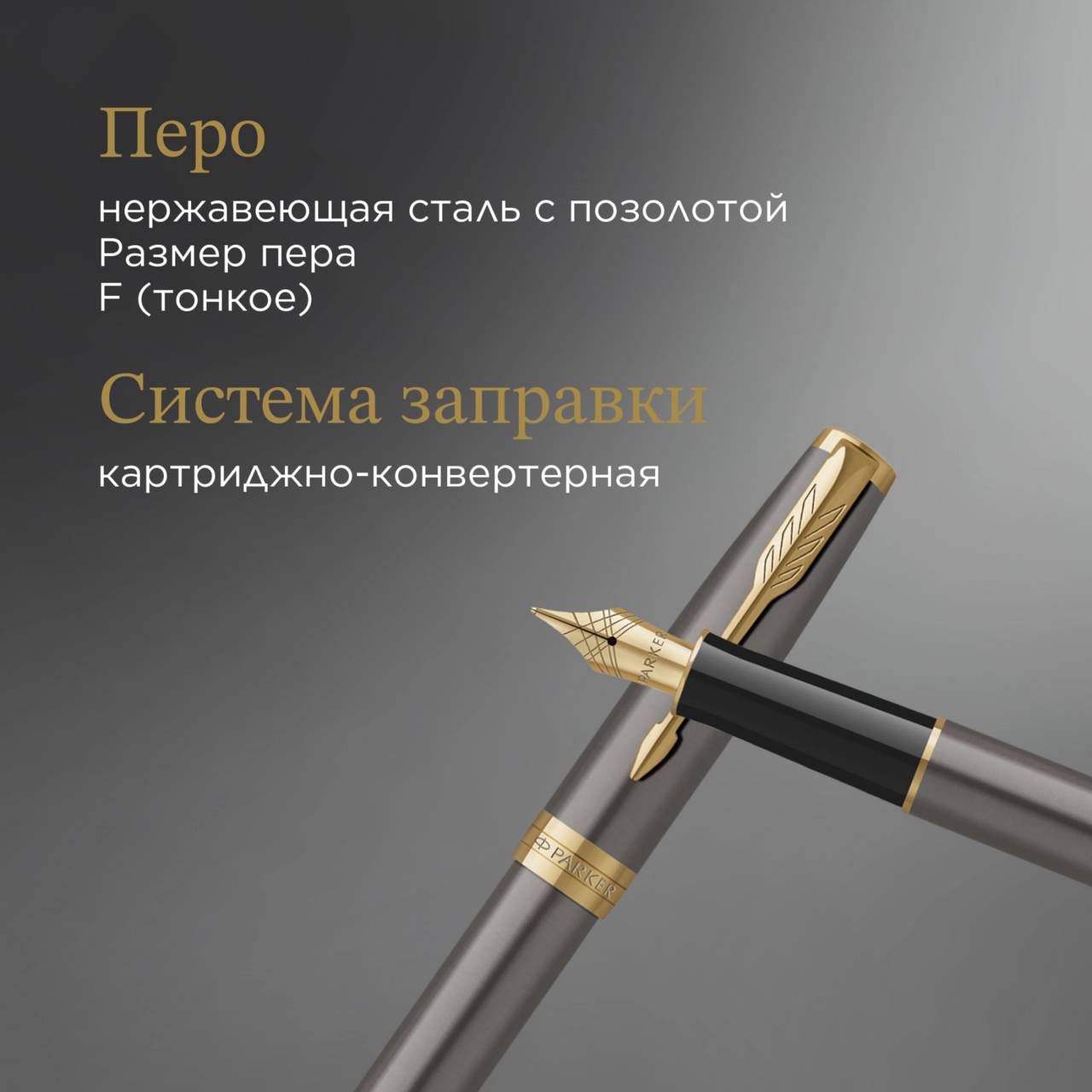 Перьевая ручка PARKER Ручка перьев. Sonnet Grey Core GT сталь нержавеющая F подар.кор.