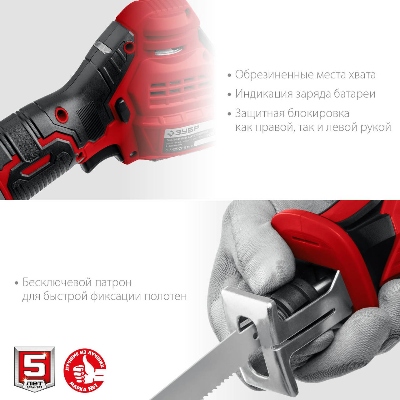 Пила сабельная ЗУБР Сабельная пила Мастер СПЛ-125 аккум. 2700ход/мин