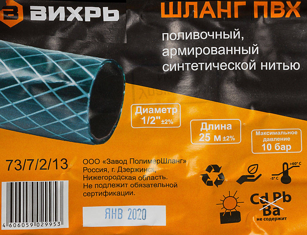 Поливочное оборудование ВИХРЬ Шланг 73/7/2/13 1/2" 25м поливочный армированный зеленый