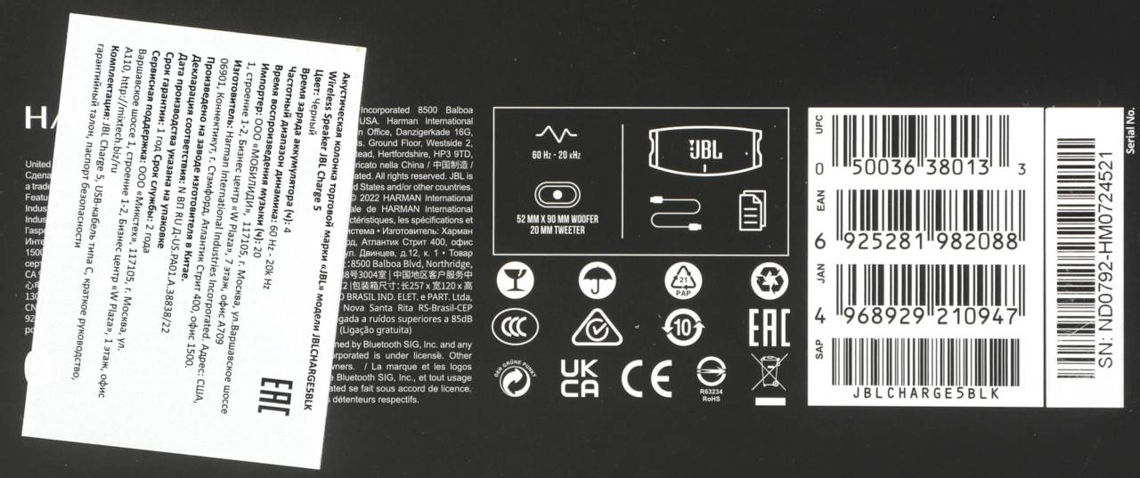 PartNumber/Артикул Производителя:JBLCHARGE5BLK