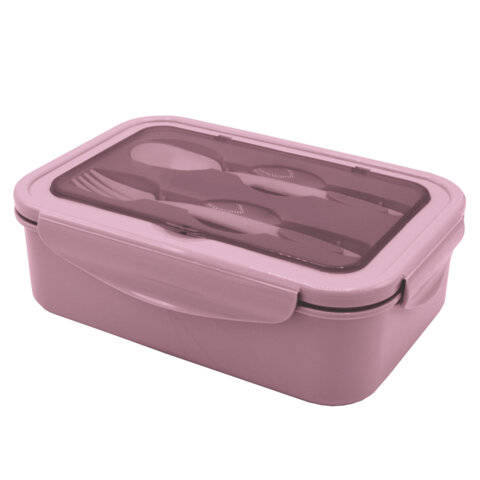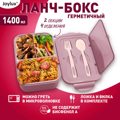 Посуда для хранения Joylux Ланч-бокс контейнер, 2 секции, 3+1 отделения, 1,4 л, ложка, вилка, 7х21х14 см, розовый, , 609348