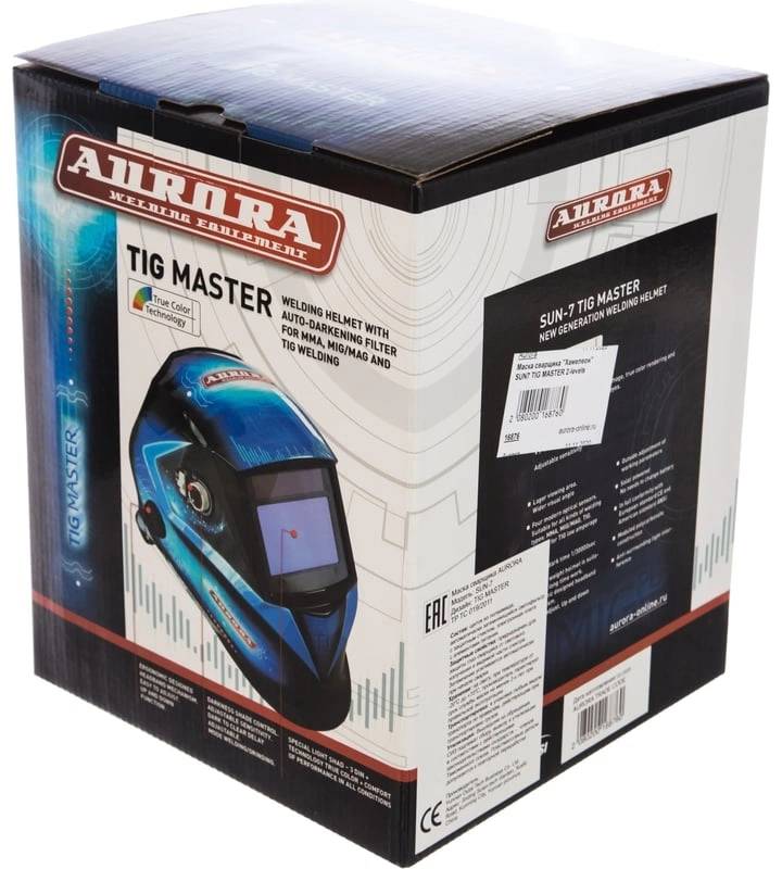Принадлежность для сварки AURORA Маска сварщика SUN7 TIG MASTER 2-levels филь.:хамел. кл.:1/2/1/1 см.экр.99x55мм синий/черный
