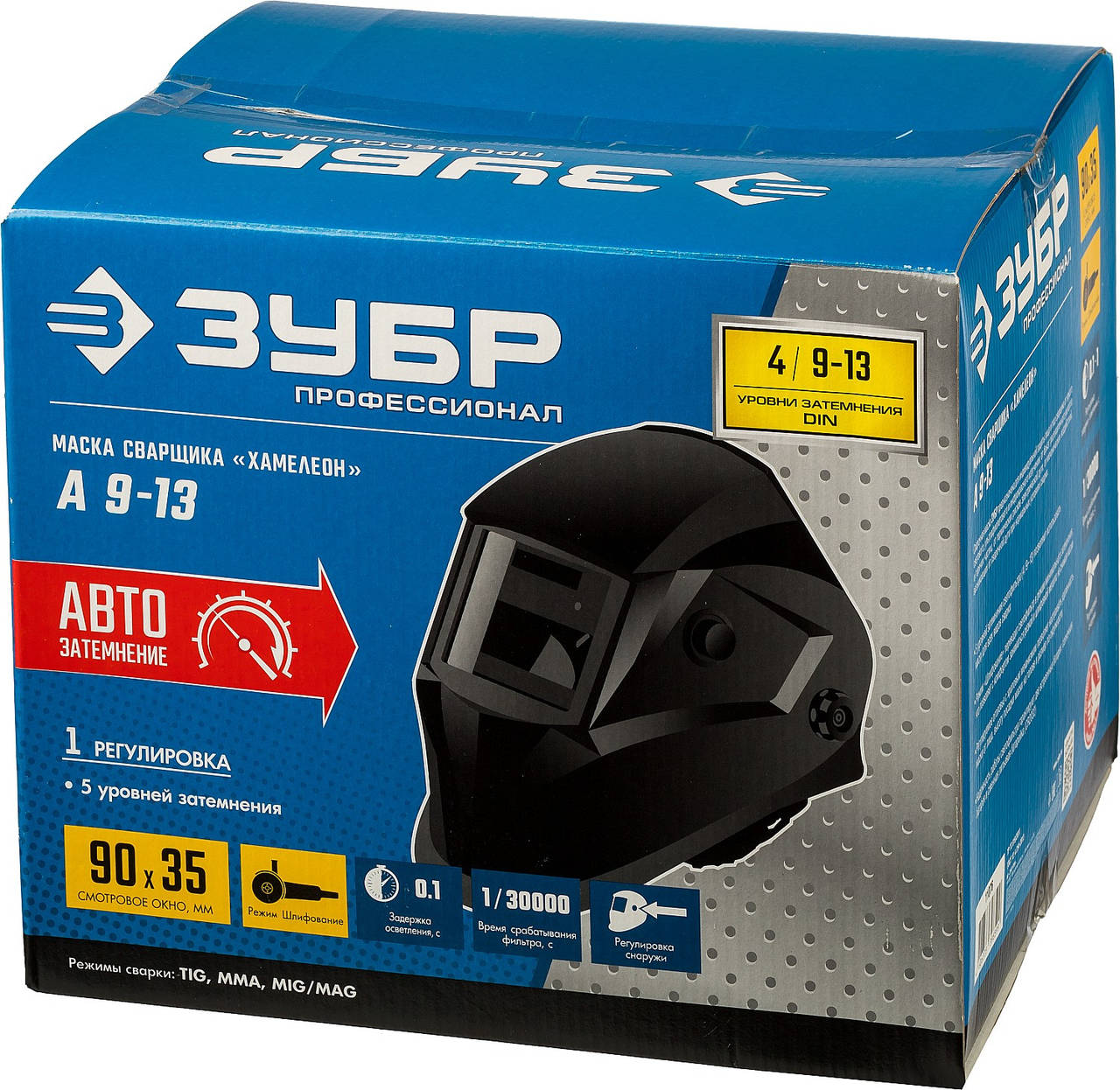 Принадлежность для сварки ЗУБР Маска сварщика А 9-13 филь.:хамел. кл.:1/2/1/2 см.экр.90x35мм черный