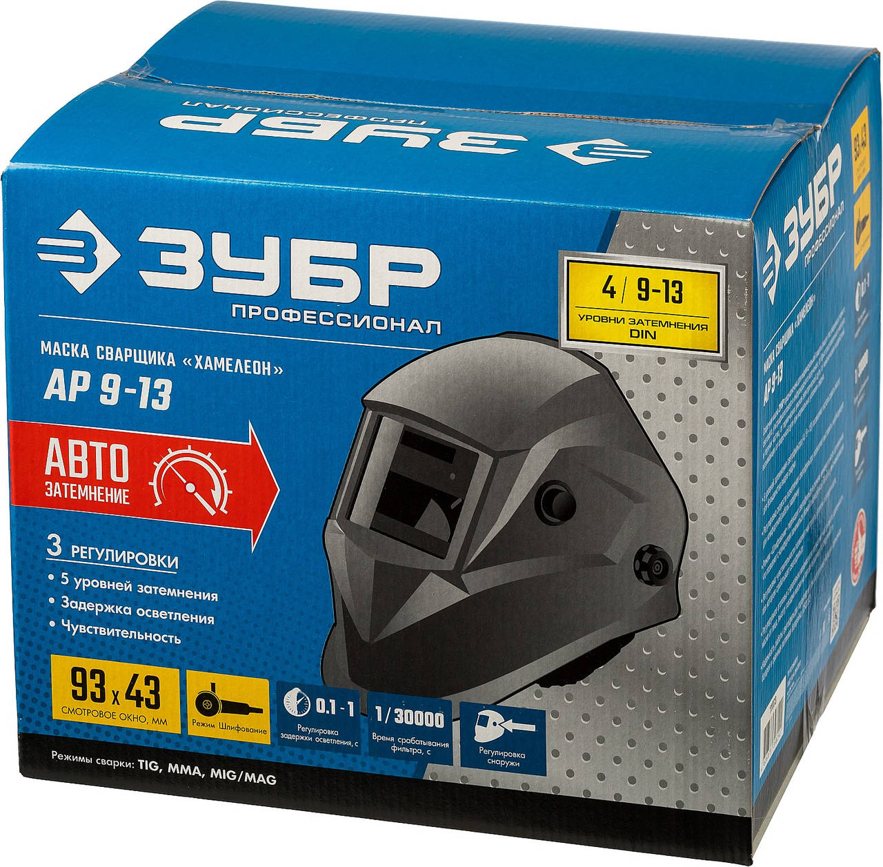 Принадлежность для сварки ЗУБР Маска сварщика АР 9-13 филь.:стекло кл.:1/1/1/2 см.экр.93x43мм серый