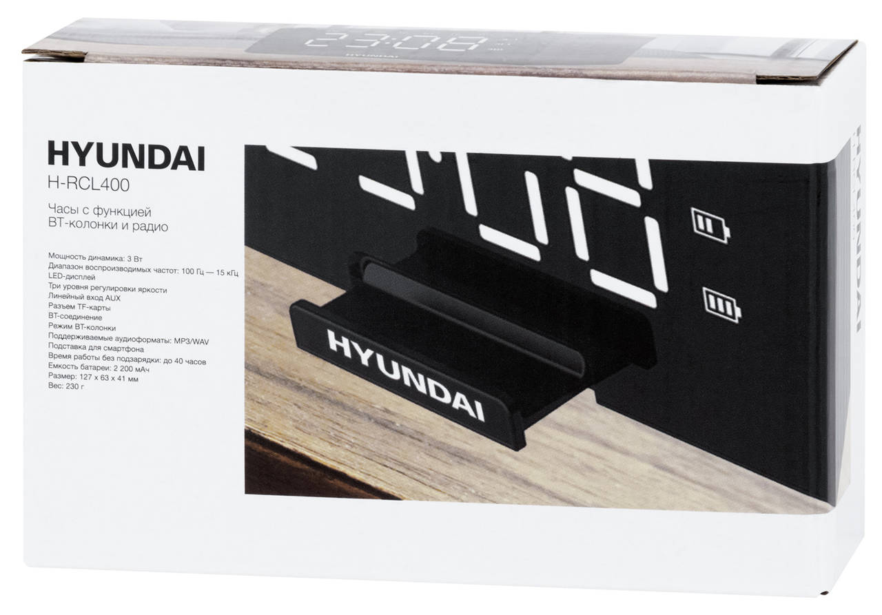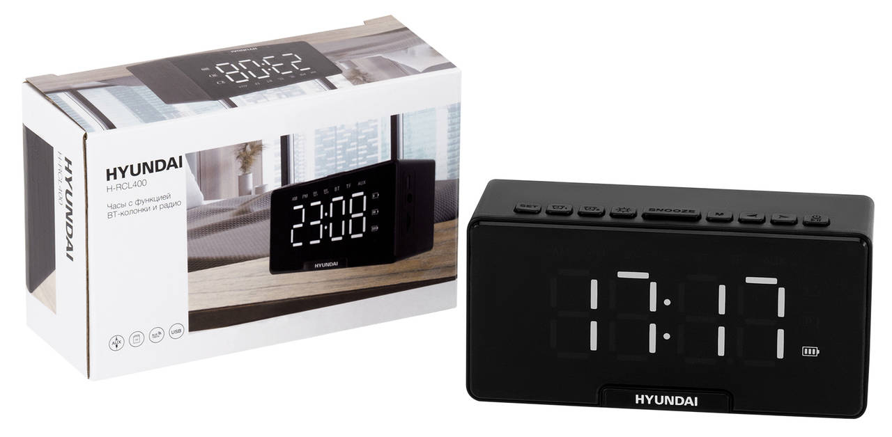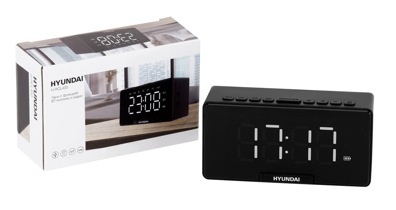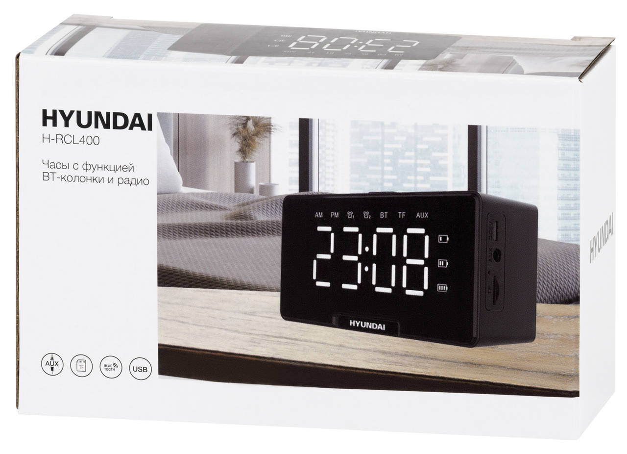 Описание:Радиобудильник HYUNDAI H-RCL400 черный LED часы:цифровые FM