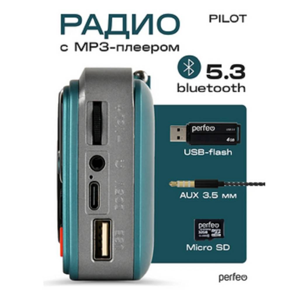 Радиоприемник Perfeo цифровой PILOT FM 87.5-108МГц/ MP3/ питание USB или 3*14500/ серый