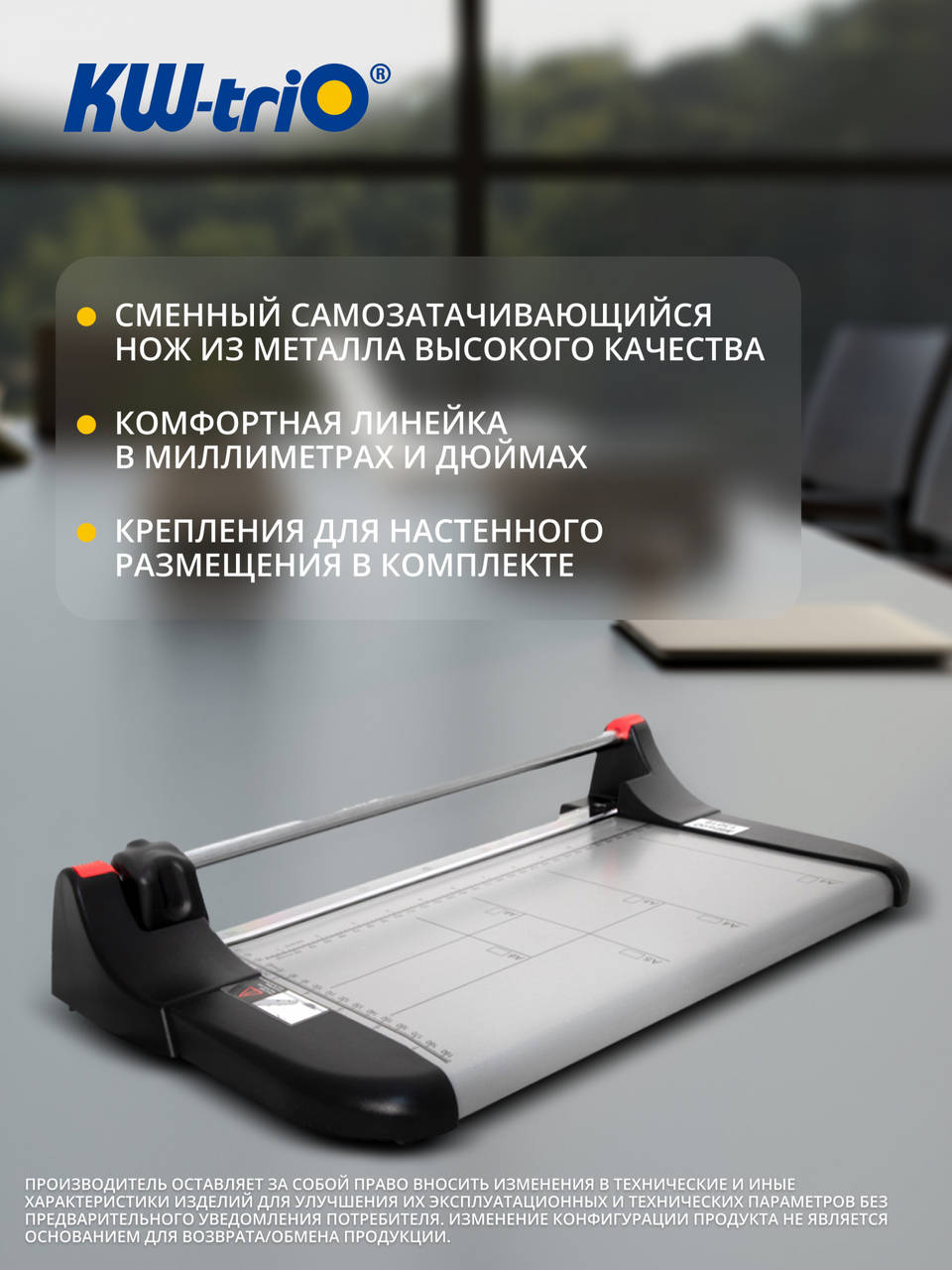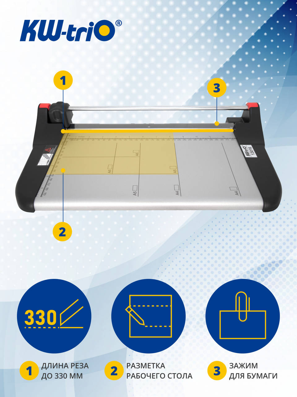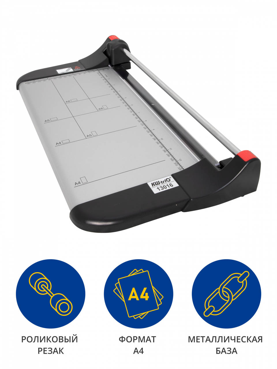 Описание:Резак роликовый KW-trio 3016 мощность 10 листов формат А4 металлическая база