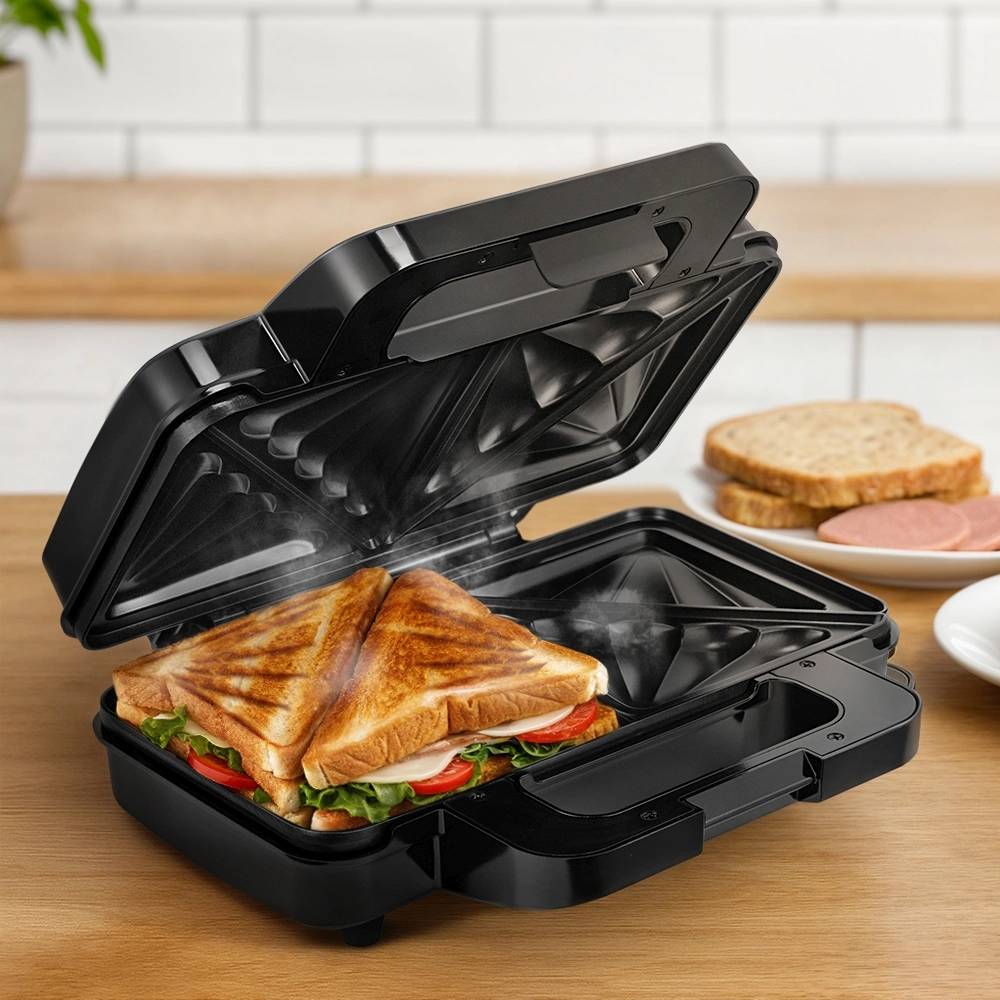 Бутербродница Сэндвичница КТ-4623 1000Вт черный/серебристый (КТ-4623)