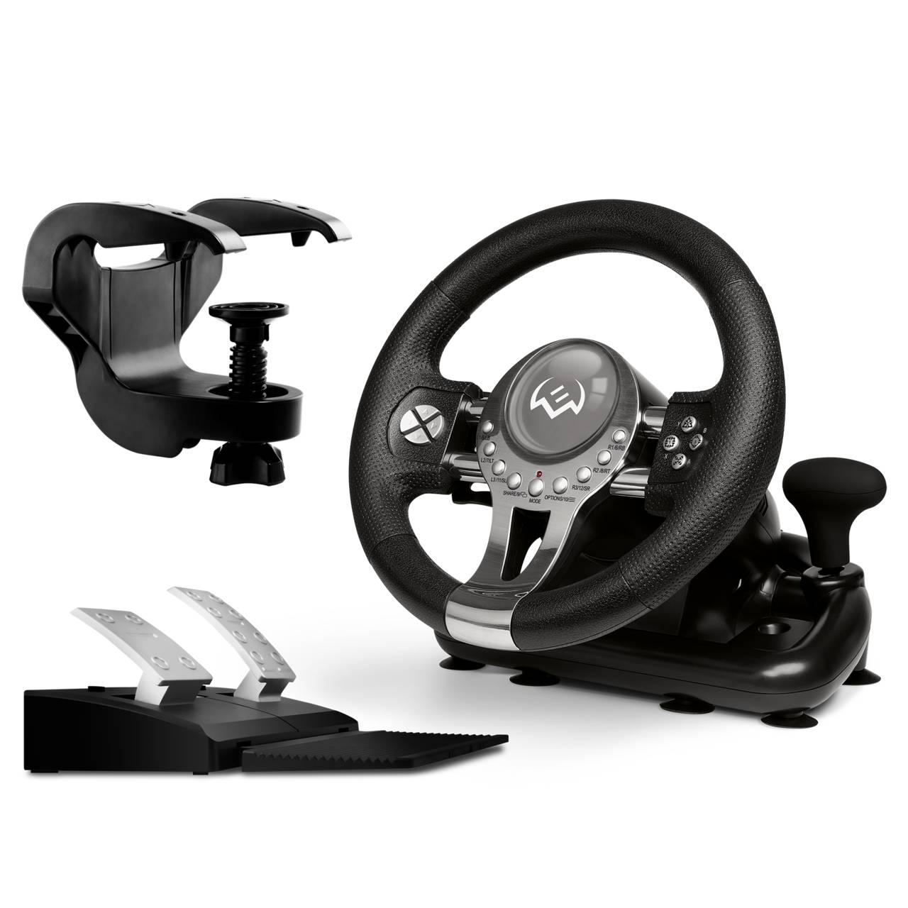 ВСЕ НУЖНОЕ ПОД РУКОЙ Программируемые кнопки помогут организовать комфортное и эффективное управление в любой игре. КОРРЕКТНАЯ РАБОТА ВО МНОЖЕСТВЕ ИГР Поддержка режимов X-Input и D-Input позволяет SVEN GC-W800 отлично взаимодействовать с различными игровыми приложениями, в том числе — увидевшими свет довольно давно. РЕАЛЬНЫЕ ОЩУЩЕНИЯ В ВИРТУАЛЬНОМ МИРЕ Благодаря качественной виброотдаче игрок может почувствовать все нюансы управления автомобилем: от поведения руля в заносе или дрифте до смены дорожного покрытия. РЫЧАГ ПЕРЕКЛЮЧЕНИЯ ПЕРЕДАЧ Переключение передач с помощью рычага, как в настоящем автомобиле, погрузит вас в атмосферу настоящих уличных гонок. ПРИЯТНО ДЕРЖАТЬ В РУКАХ И КОМФОРТНО ИГРАТЬ Прорезиненные вставки на руле добавят реализма вашему вождению и позволят крепко держать руль в руках во время резких движений. ПЕДАЛИ КАК В НАСТОЯЩЕМ АВТОМОБИЛЕ Управление автомобилем невозможно представить без использования педалей. У SVEN GC-W800 они размещены на специальной подставке, устойчиво стоящей на любых напольных покрытиях. Нажатие происходит с приятным усилием и максимально симулирует вождение авто. СОВМЕСТИМОСТЬ С PS3 / 4 / XB1 Благодаря совместимости руля с PS3, 4 и XB1, вы можете наслаждаться не только компьютерными играми, но и гонками на самых популярных современных консолях