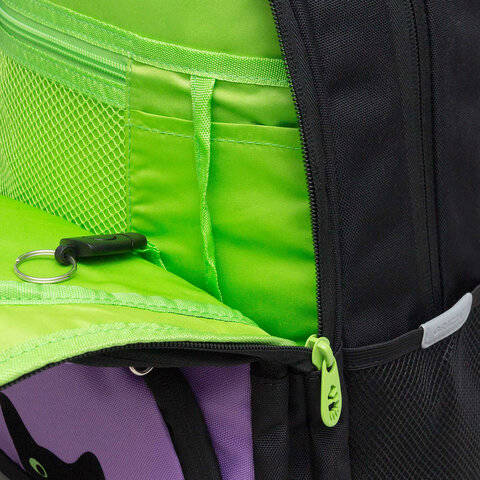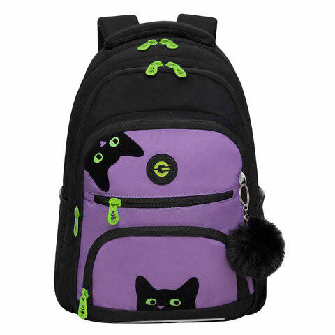 Рюкзак GRIZZLY школьный, укрепленная спинка, 3 отделения, для девочек, "KITTENS", фиолетовый, 39х30х20 см, RG-362-4/2