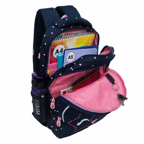 Рюкзак GRIZZLY школьный, анатомическая спинка, 2 отделения, для девочек, "WINK", 40х27х20 см, RG-460-6/4