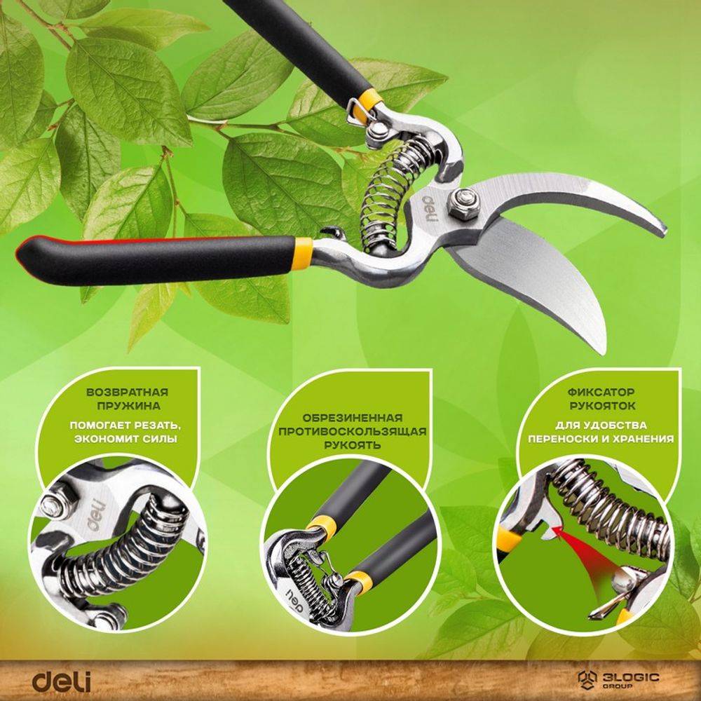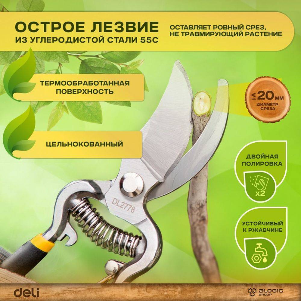 Садовый инструмент DELI Секатор садовый DL2778 длина 210мм, макс. диаметр резки 10мм, сталь 55С Bad Pack