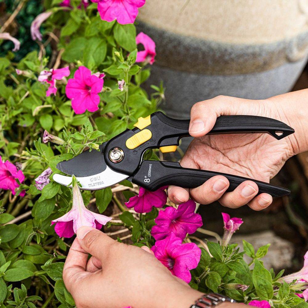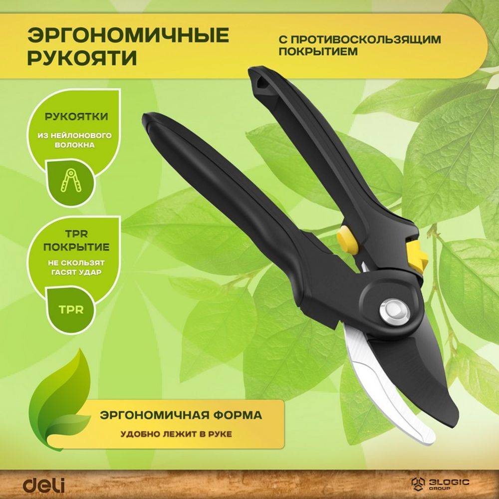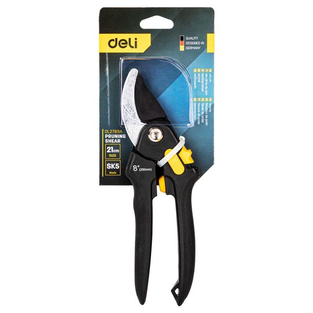 Садовый инструмент DELI Секатор садовый DL2789A лезвия с тефлоновым покрытием, длина 200мм, макс. диаметр резки 18мм, сталь СК5