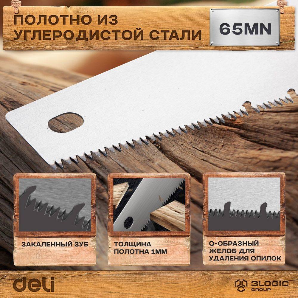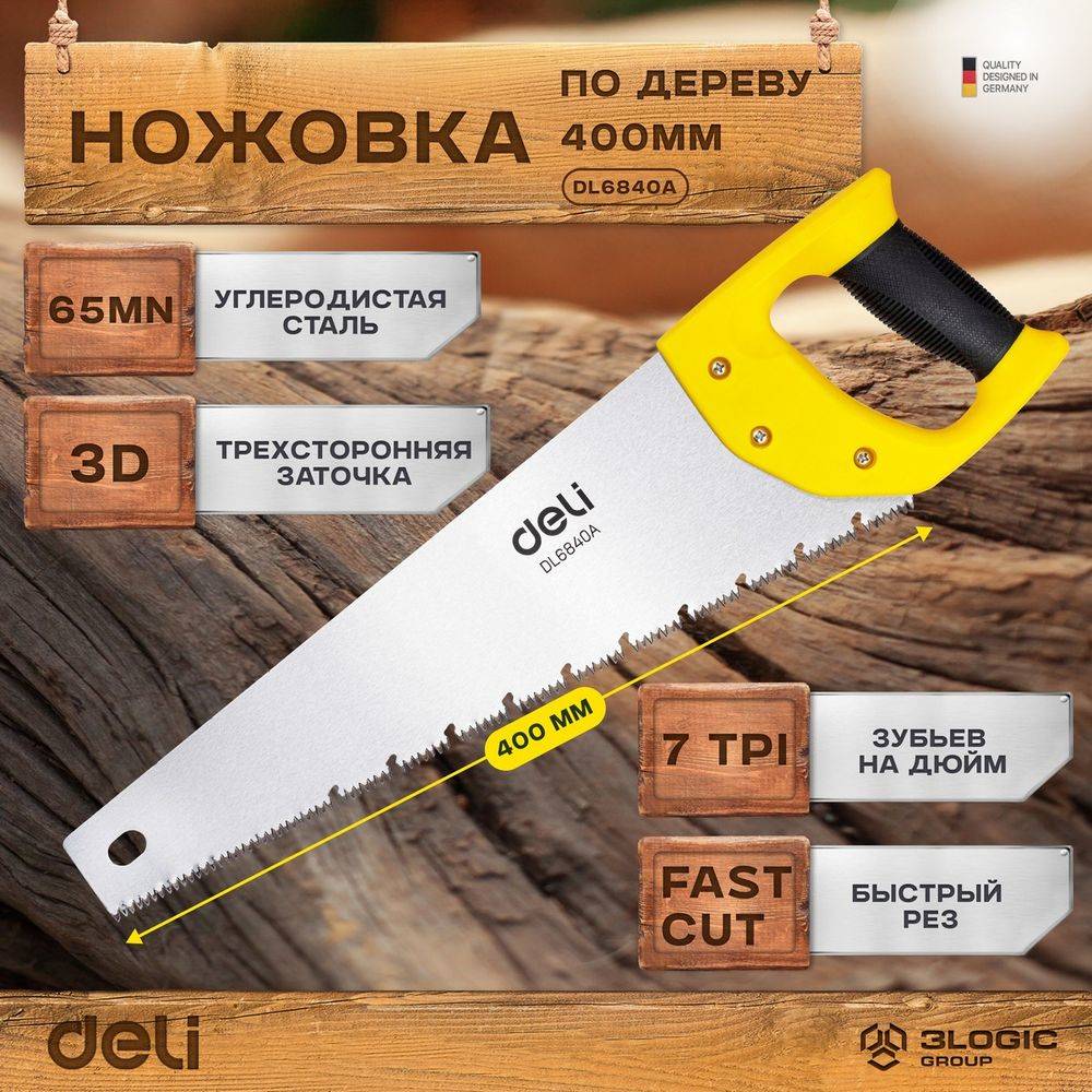 Садовый инструмент DELI Ножовка по дереву DL6840A 400мм, сталь 65Mn, шлифовка зубцов с 3-х сторон, рукоять из двухкомпонентного противоударного пластика