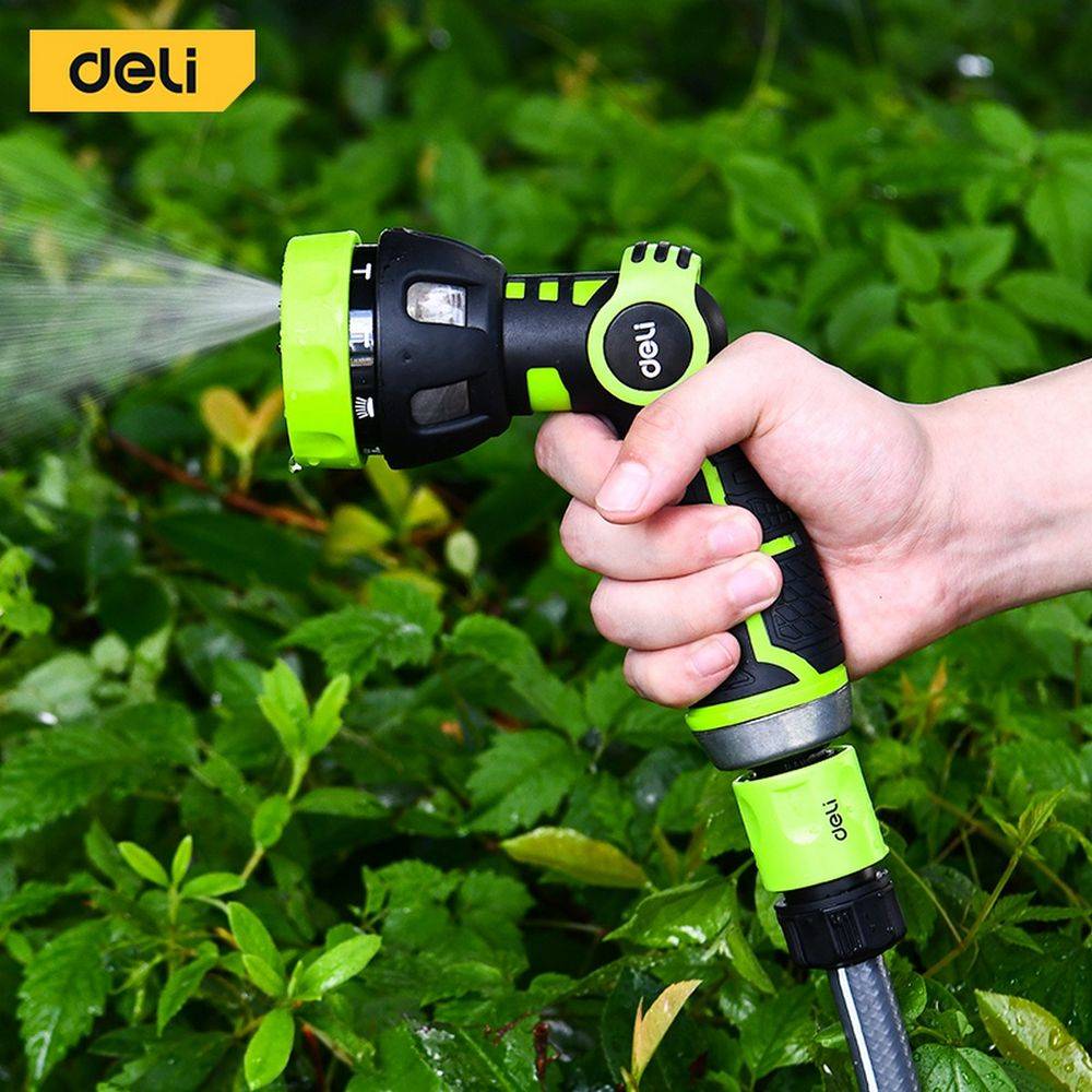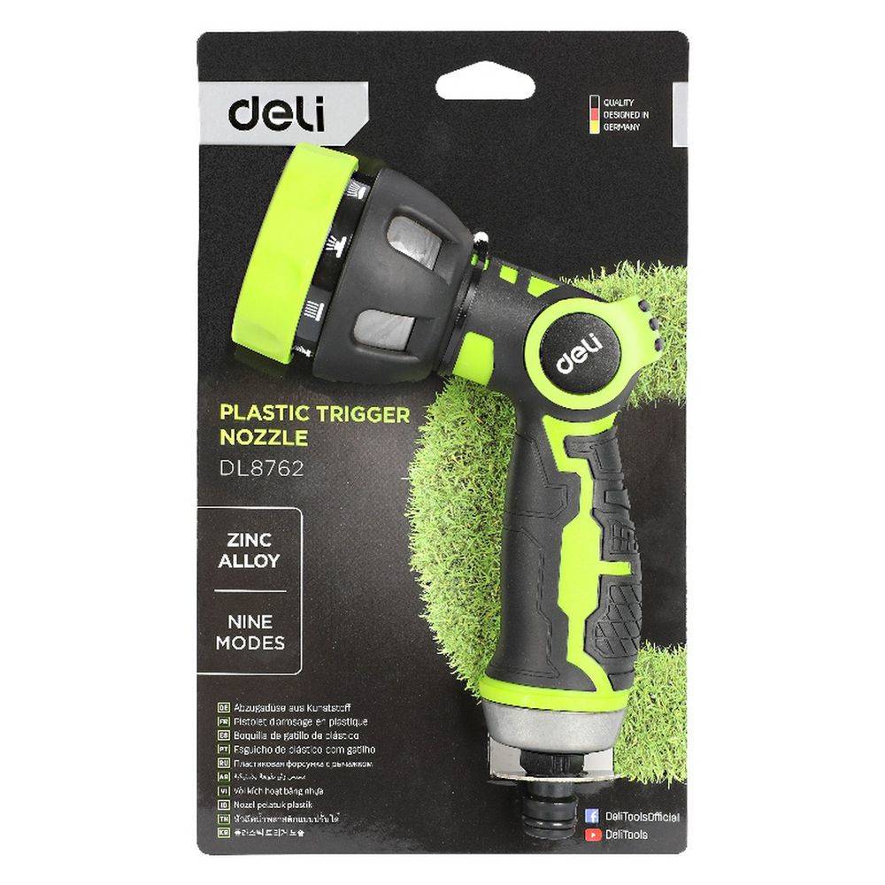 Садовый инструмент DELI Пистолет-распылитель поливочный бескурковый DL8762 9 режимов распыления, диаметр шланга 3/4", прорезиненная рукоять, корпус из цинкового сплава