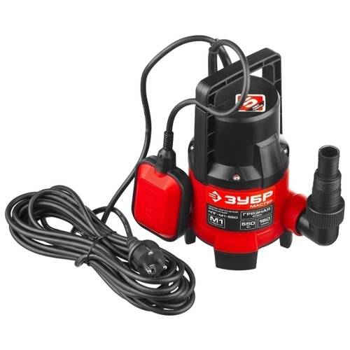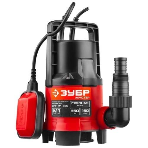 Садовый насос ЗУБР [НПГ-М1-550] Насос М1 погружной { дренажн. для грязн воды , 550Вт, пропускн способность 160л/мин, напор 6.5м, провод 7м }