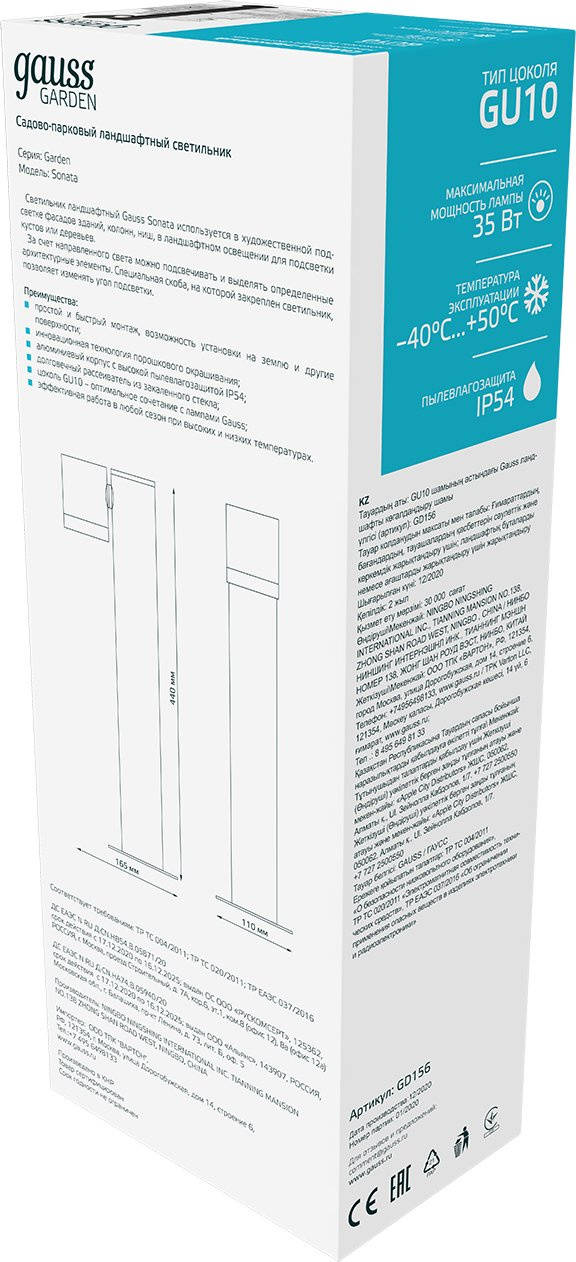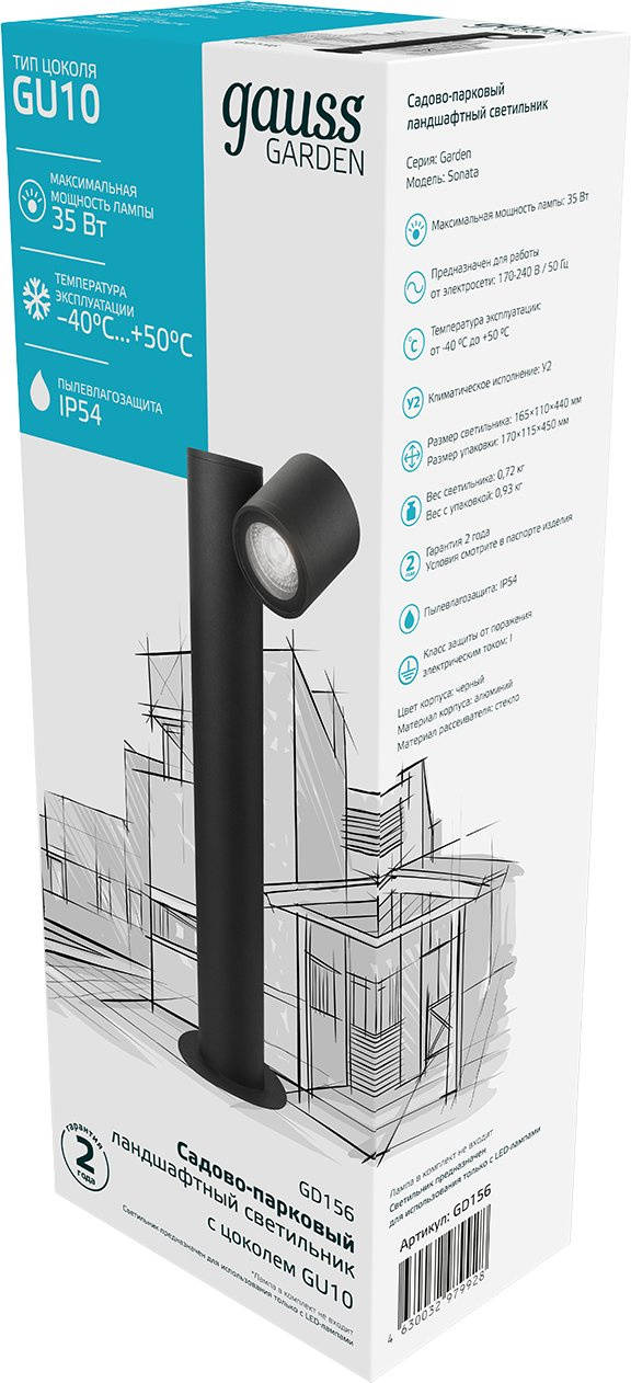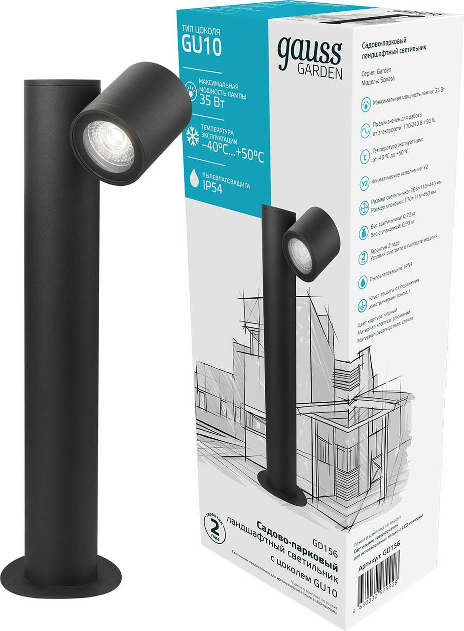 Описание:Садовый светильник GAUSS Светильник садово-парк. GD156 35Вт ламп.:1шт светодиод.лампа черный