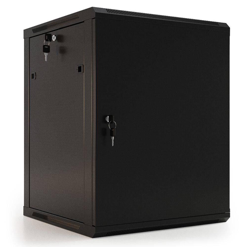 Серверный шкаф Шкаф TWB-0966-SR-RAL9004 настенный 9U 500x600х600мм, металлическая передняя дверь с замком, две боковые панели, цвет черный (TWB-0966-SR-RAL9004)