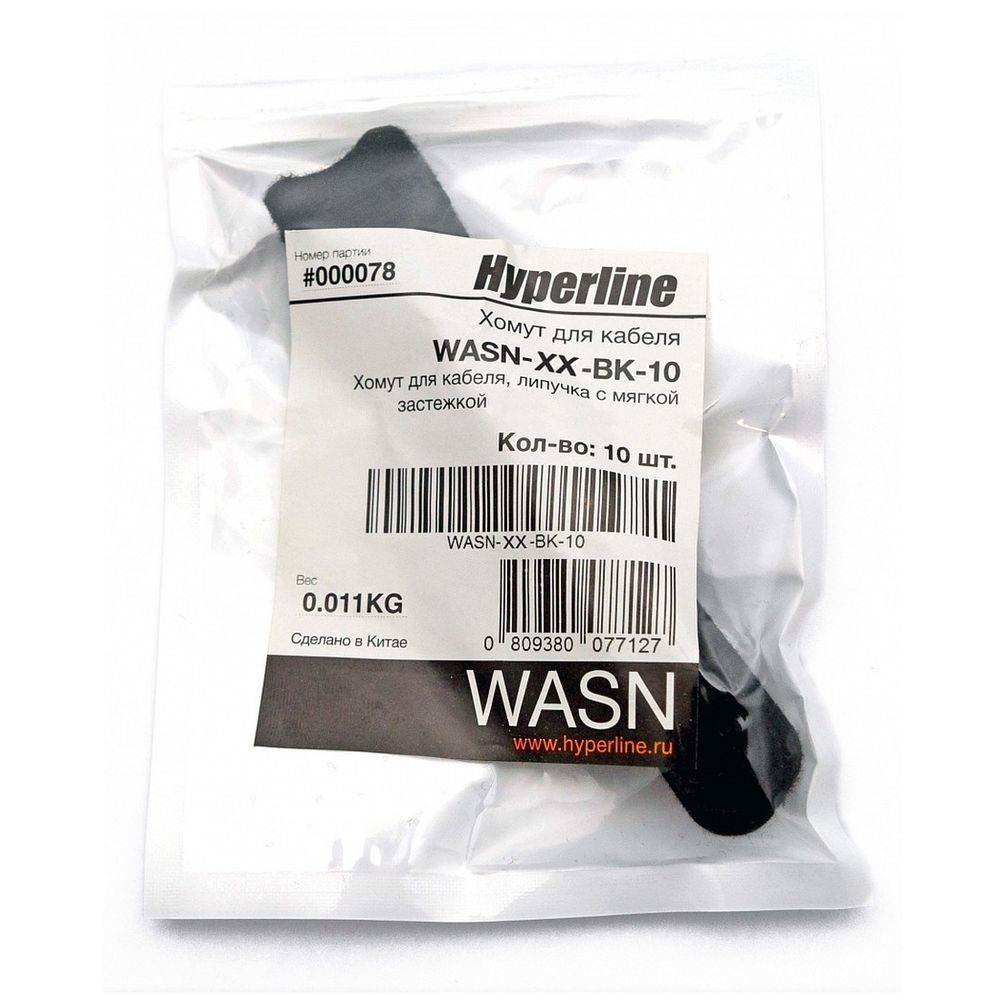 Серверный шкаф HYPERLINE Аксессуары WASN-310-BK-10 Хомут для кабеля, липучка с мягкой застежкой, 310x14 мм, черный