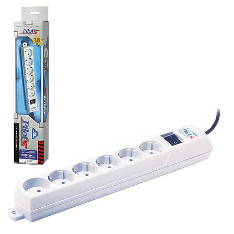Сетевой фильтр PILOT ZIS PILOT "S", 5 компьютерных розеток + 1 бытовая розетка, 1,8 м, белый