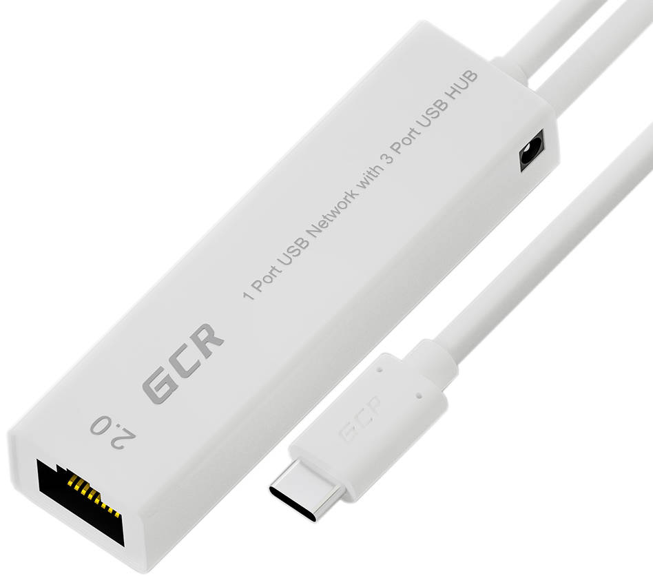 Сетевая карта Greenconnect USB 3.1 Type C -> Ethernet RJ-45 F Lan Card + USB 2.0-разветвитель на 3 порта, сетевой адаптер, белый, GCR-UC2CL02