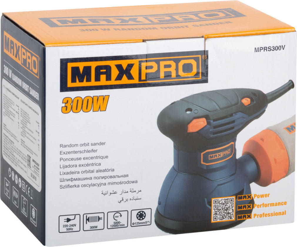 Шлифмашина эксцентриковая MAX-PRO Эксцентриковая шлифмашина MPRS300V 300Вт D125мм