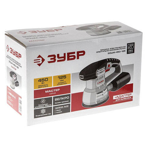 Шлифмашина эксцентриковая ЗУБР Орбитально-шлифовальная машина, 450 Вт, диск 125 мм, 13000 об/мин, ЗОШМ-450-125