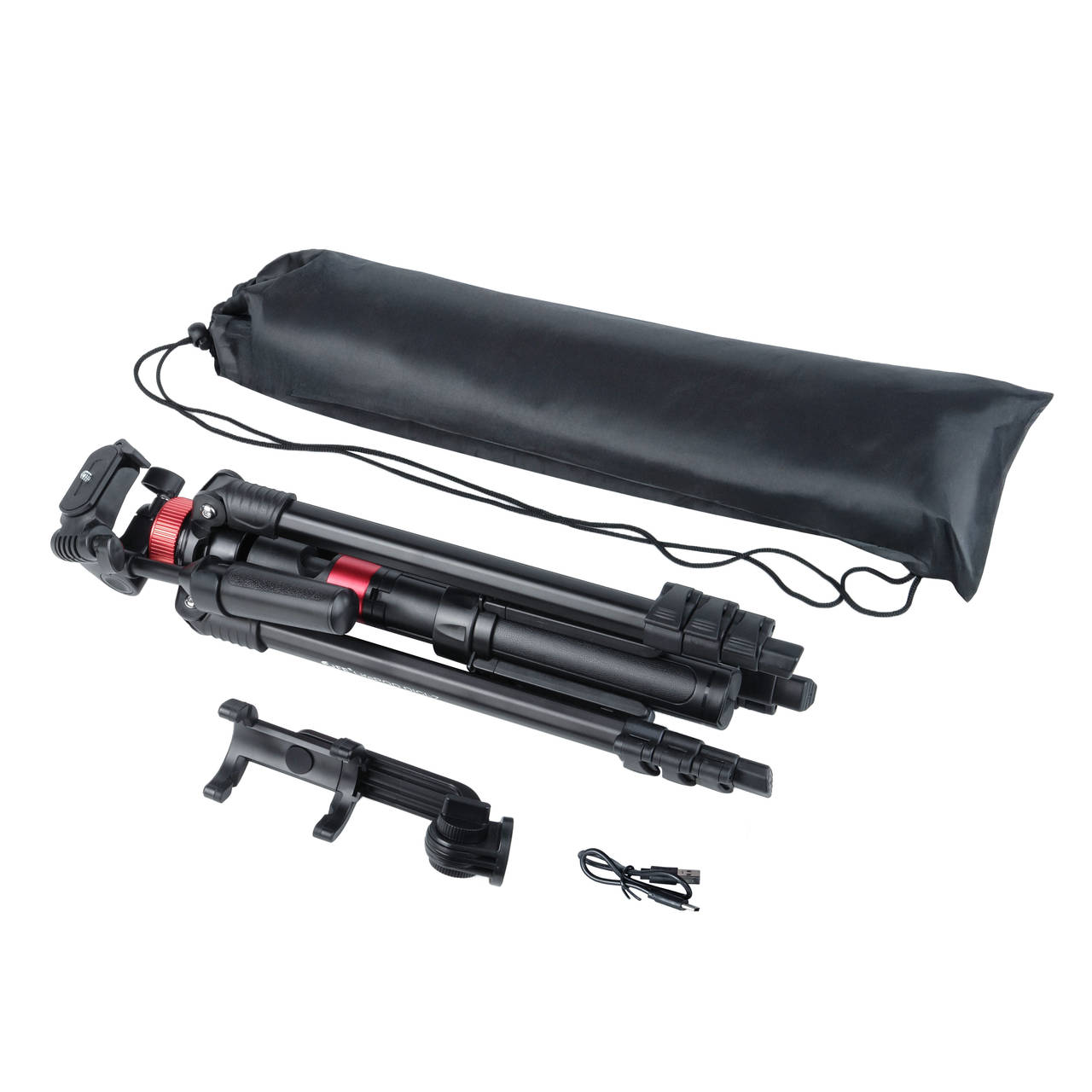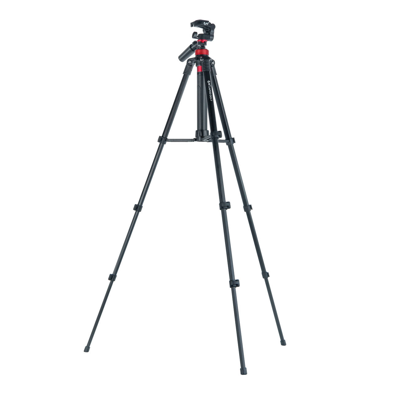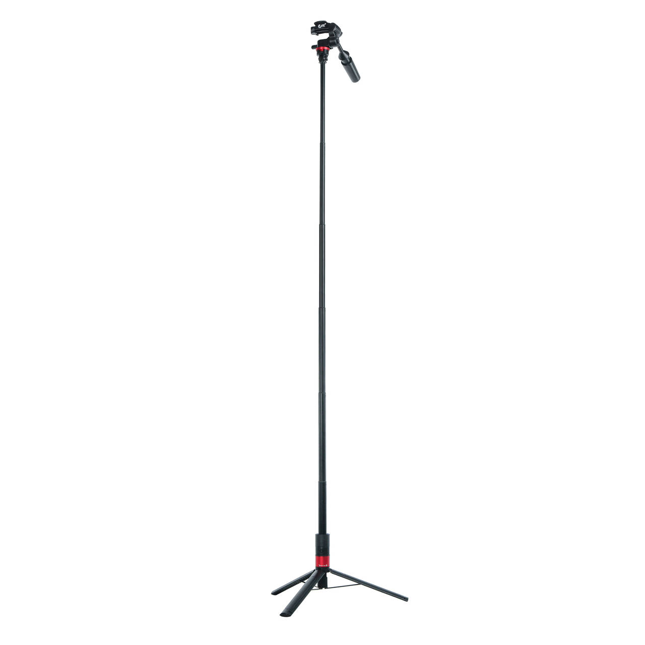 Высота штатива регулируется от 42 до 233 см (самой треноги - до 107 см), давая возможность выбрать оптимальное положение для съемки в зависимости от условий и предпочтений пользователя. Благодаря телескопическому механизму секции плавно выдвигаются и фиксируются на нужной высоте, что делает настройку быстрой и удобной.