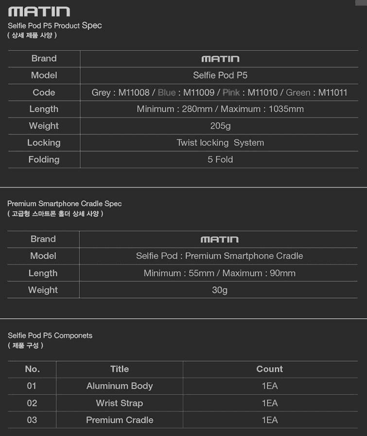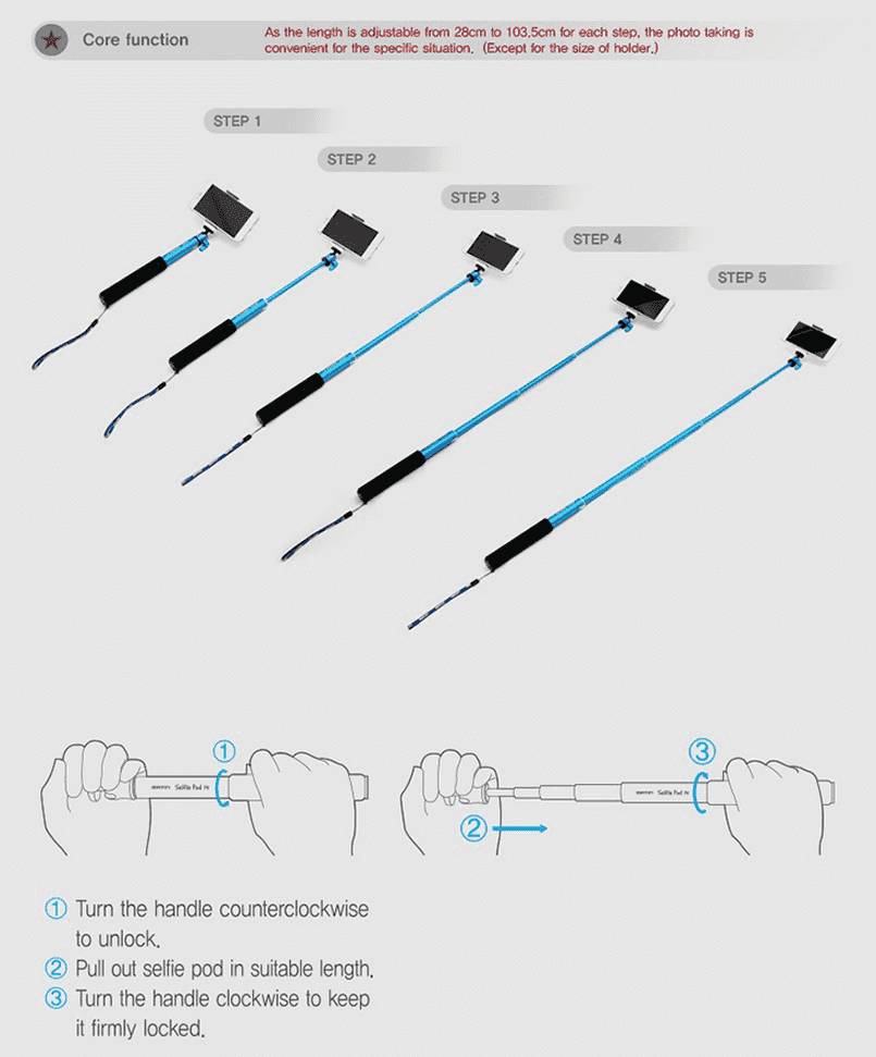Штатив Matin Монопод SELFIE POD - P5 / BLUE, монопод для селфи, поликарбонатное верхнее крепление, синий M-11009