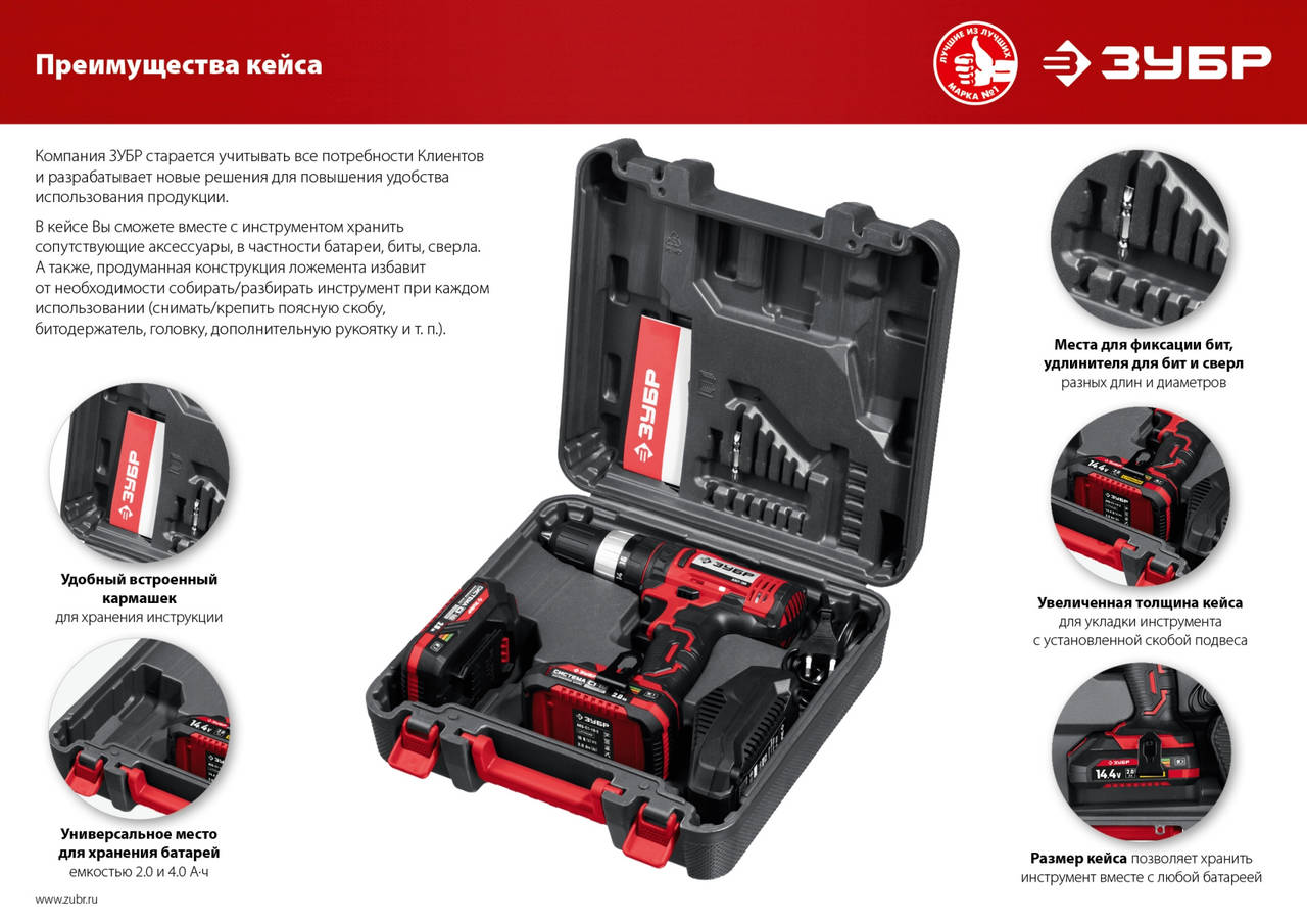 Ударная дрель-шуруповерт ЗУБР - универсальный инструмент для сверления бетона, кирпича, камня и заворачивания метизов. Значительный крутящий момент на первой скорости позволяет выполнять работу со сверлами и крепежом больших диаметров.