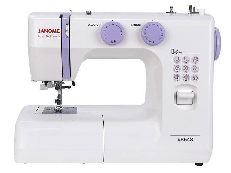 Janome VS 54S предусматривает выполнение 19 различных видов строчек, а также автоматическое создание петли. Оверлочный шов отлично имитирует строчку-зигзаг, с потайным стежком подрубка брюк будет смотреться ровно и аккуратно, а эластичная строчка создана для работы с капризными трикотажными изделиями.