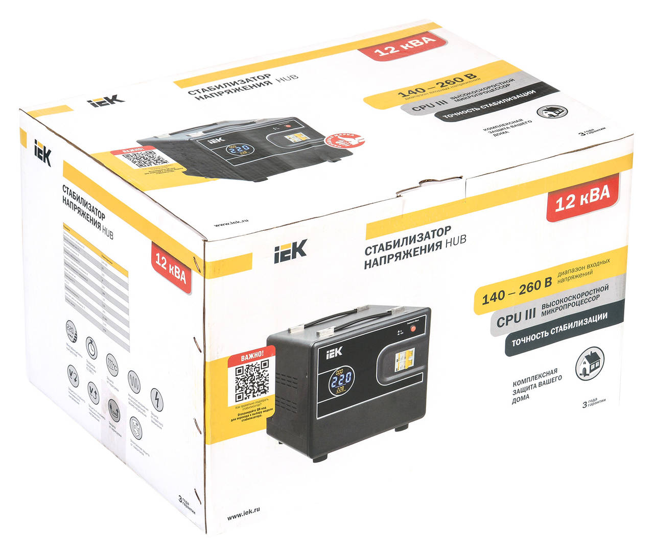 Сетевой стабилизатор IEK Стабилизатор напряжения Hub 12кВА однофазный черный (IVS21-1-012-13)