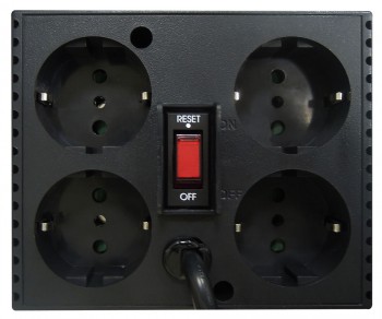 | Особенности: | эффективность до 95%, потребляемая мощность менее 10 Вт, варистор для защиты от всплексов напряжения, стабилизация выходного напряжения /- 5%, индикатор включения, индикатор пониженного напряжения, индикатор повышенного напряжения, все розетки оборудованны заземлением |